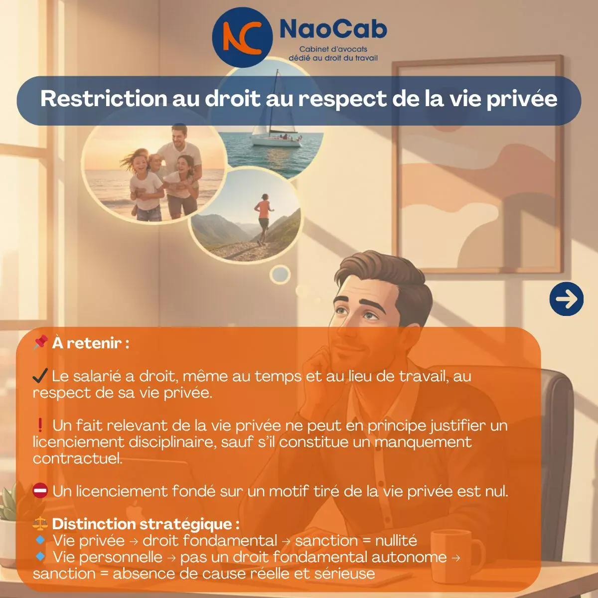 đ« Un fait relevant de la vie privĂ©e ne peut en principe justifier un licenciement disciplinaire, sauf manquement Ă une obligation contractuelle.
